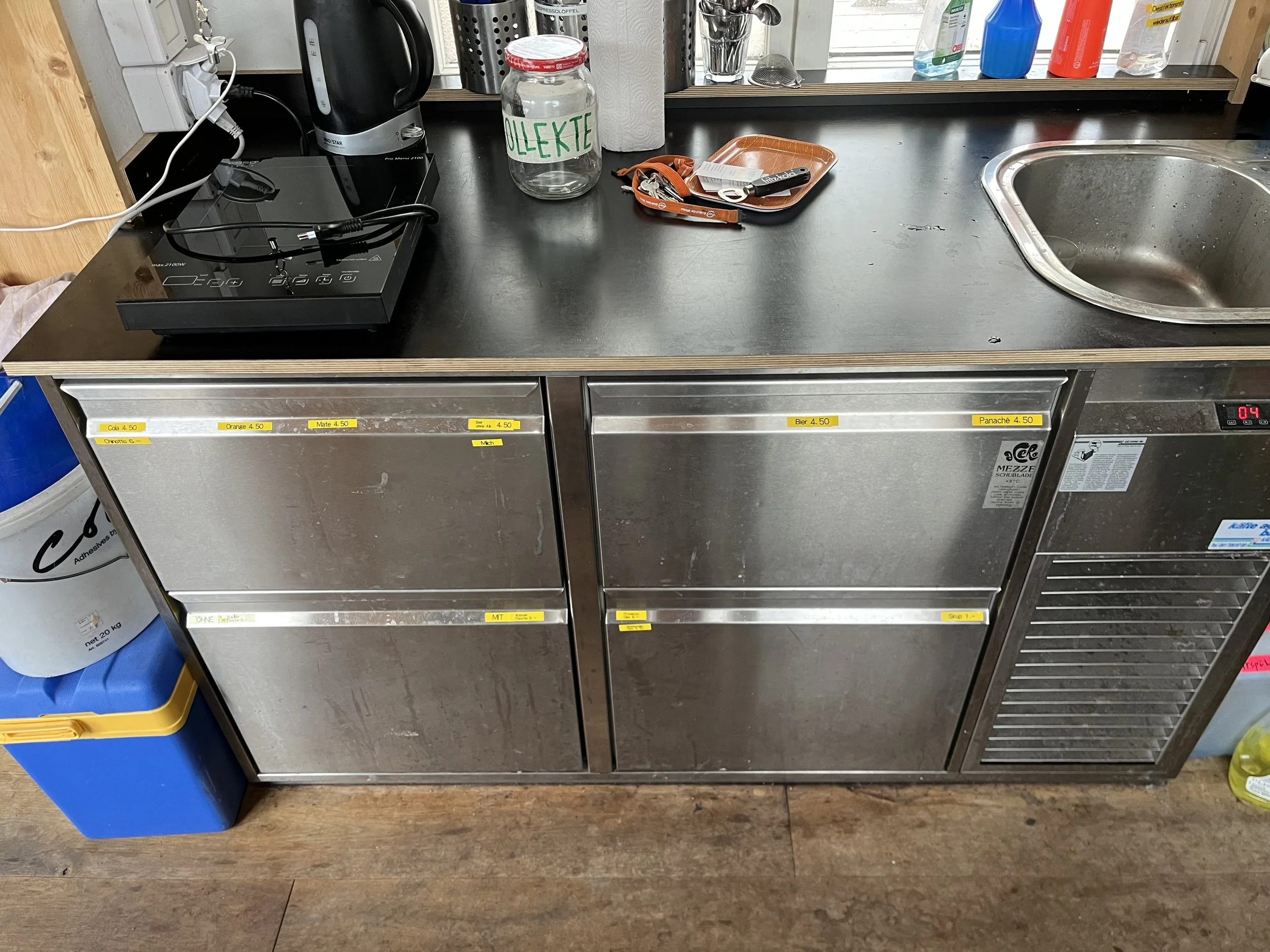 Es stehen Kühlschubladen zur Verfügung. Diese sind für die Lagerung deiner eigenen Getränke tabu, sofern nicht anders mit dem Verein Erle Perle abgesprochen.
